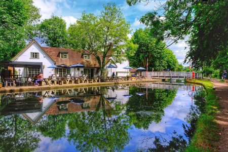 The Boathouse pub & restaurant sits beside the Grand Union Canal. Dog Friendly.